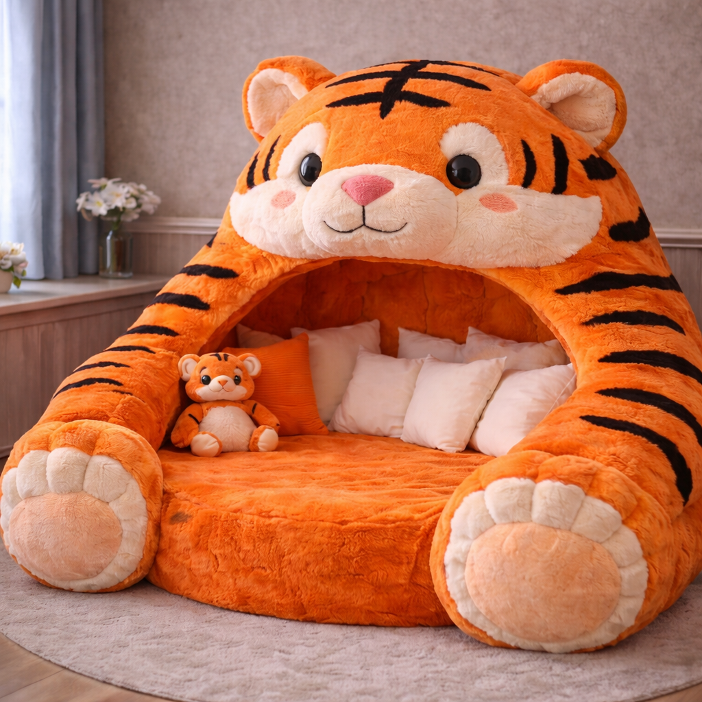 The Ultimate Safety: There is a deep irony in sleeping on a predator. In nature, you would never close your eyes near a tiger. By curling up on the back of a plush one, you are subconsciously signaling that your environment is so secure, even the most dangerous animal on earth has become your pillow. It is the ultimate manifestation of safety.